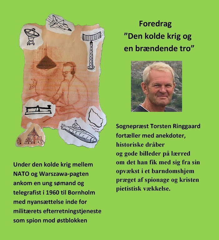 Sognepræst Torsten Ringgaard fortæller med anekdoter, historiske dråber og gode billeder på lærred om det han fik med sig fra sin opvækst i et barndomshjem præget af spionage og kristen pietistisk vækkelse.