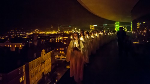 Kirkens spirekor og juniorkor går luciaoptog og synger julekoncert i kirken. Alle er velkomne, og efter byder koncerten vi på æbleskiver og kaffe.