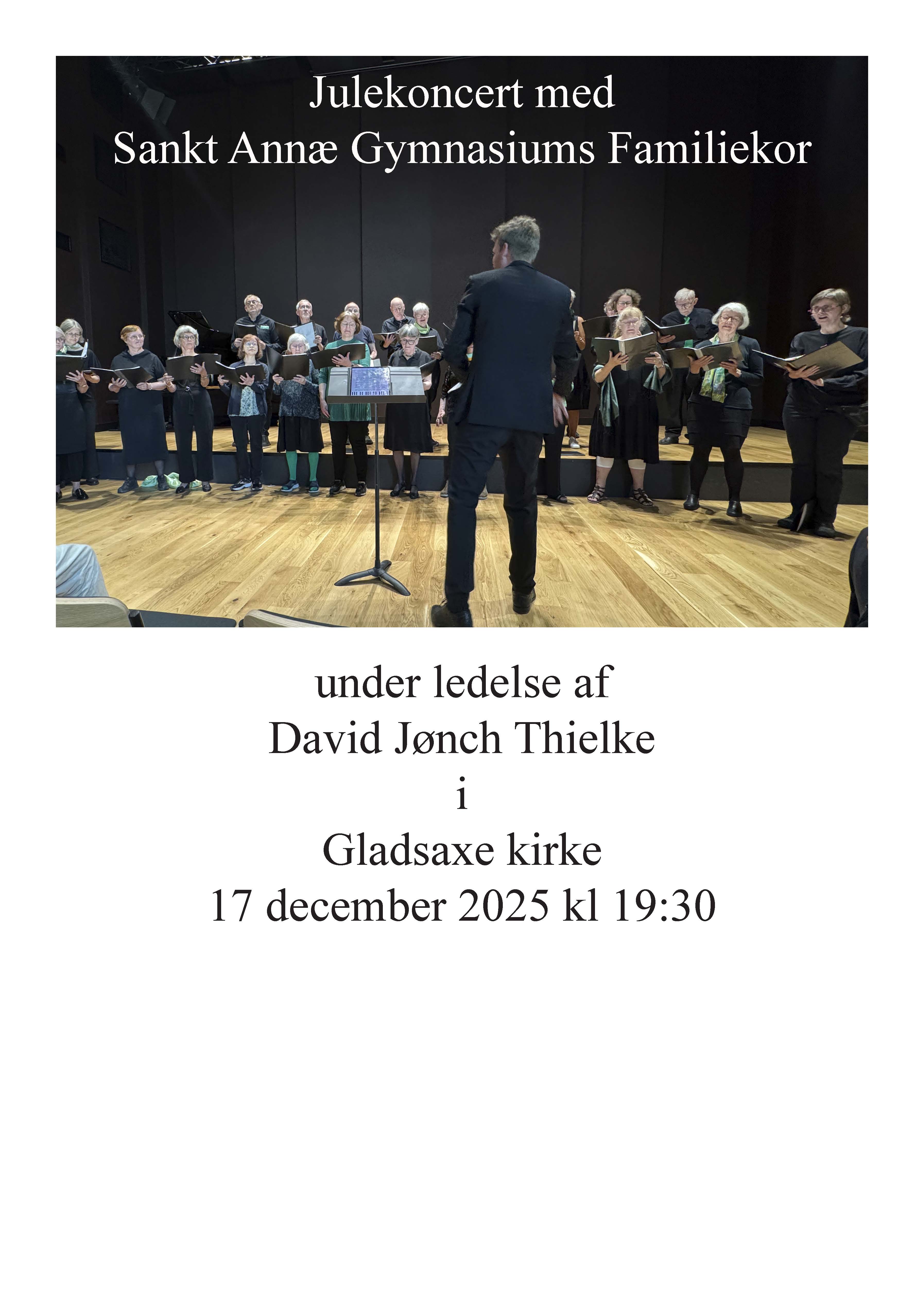 Kom til en hyggelig og stemningsfuld julekoncert med Sankt Annæ Gymnasiums Familiekor. Vi synger et repertoire af Christmas Carols og danske julesange af komponisterne G. Holst, N. W. Gade, John Rutter mm.